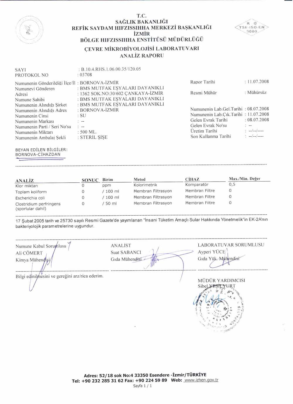 Plastik BPA Testi Gıdaya Uygunluk Belgesi