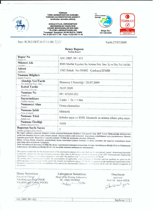 Plastik BPA Testi Gıdaya Uygunluk Belgesi