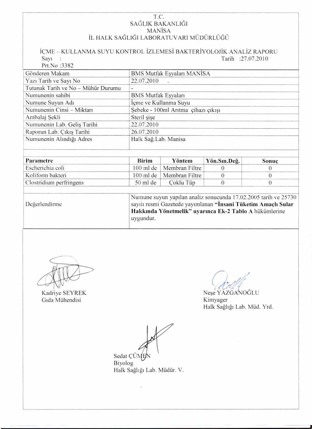 Plastik BPA Testi Gıdaya Uygunluk Belgesi